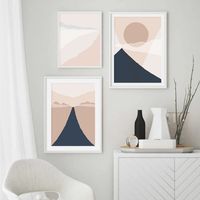 Modern Beige Taupe Trendy Colors Abstract Geometric Mountain Sun Landscape Canvas Painting Poster Print Living Room Home Decor